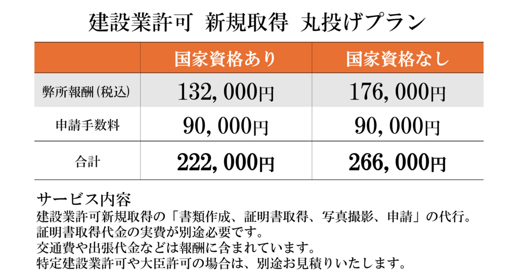 料金のお支払いのタイミングは、許可の取得が確実になった申請直前です。