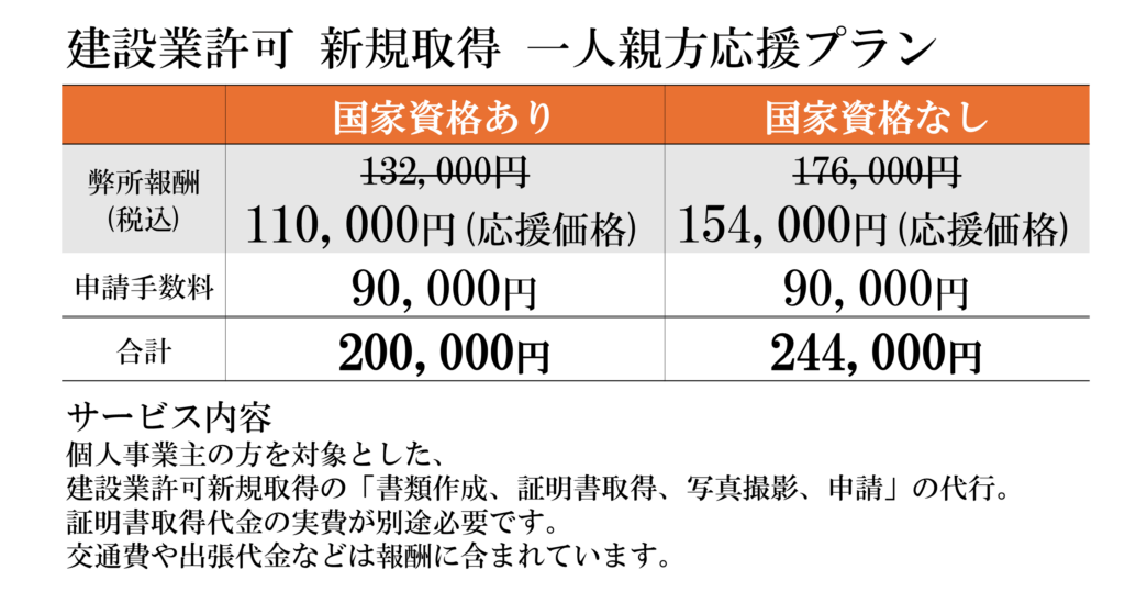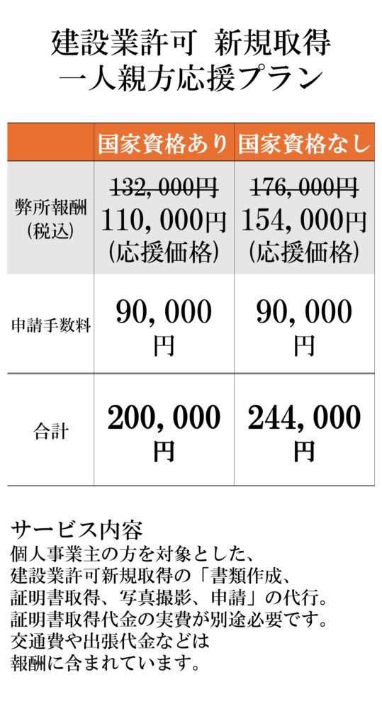 応援の気持ちを込めて、一人親方様に対して特別価格でサポートいたします!